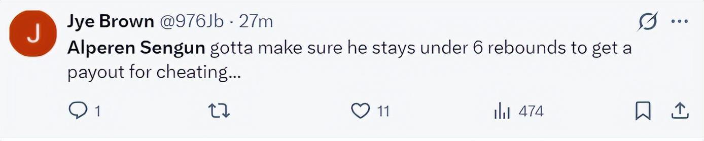质疑NBA的球迷也有:1.NBA这是被操纵了吗?一个中锋打了半场没有篮板球?